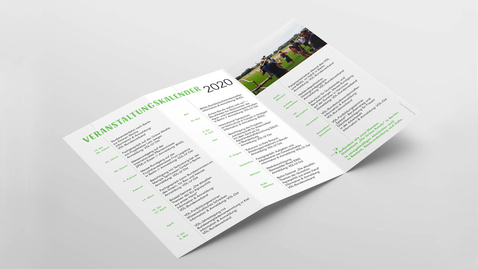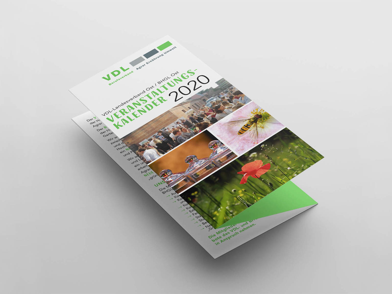 Leistung: // Gestaltung eines Flyers mit 3 Motiven Ziel: frischeres und jüngeres Auftreten, um mehr Absolventen zu gewinnen // Gestaltung des Jahresprogramms Kunde: Berufsverband Agrar, Ernährung, Umwelt e.V.